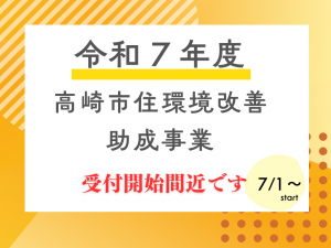 高崎市住環境助成金の事前申請の申込日が迫ってきました!!