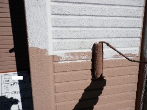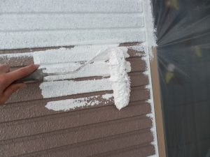 外壁は3回塗りで、微弾性の下塗りを選定しています