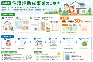 こちらの助成金は、高崎市内の業者を利用して、自宅の住環境向上のための改修や修繕等をする場合に